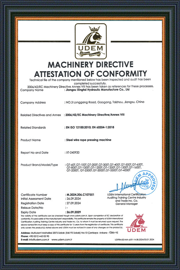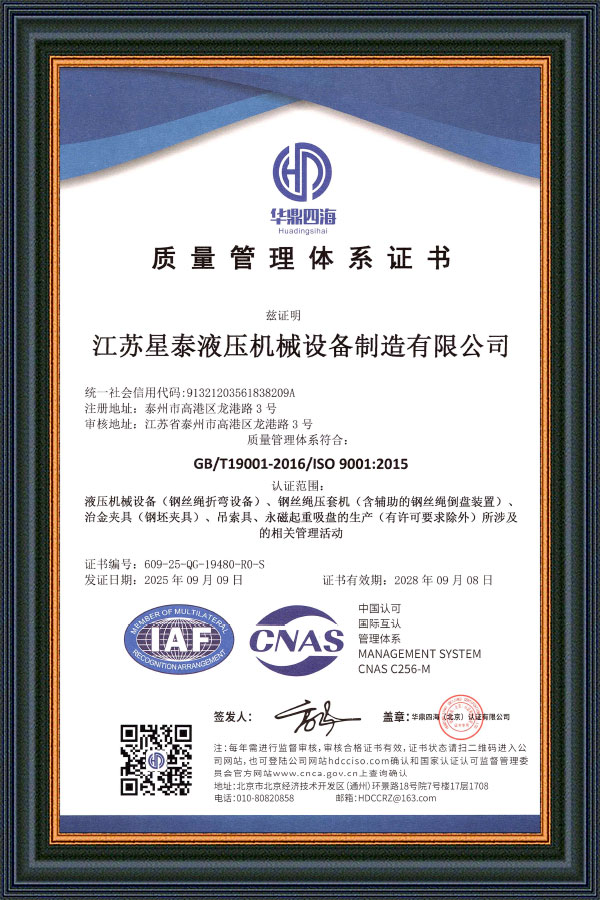 شركة جيانغسو شينغتاي للتصنيع الهيدروليكي المحدودة تأسست عام 1992 وتقع في مدينة تايتشو بمقاطعة جيانغسو بالصين. تتخصص الشركة في تصنيع آلات ضغط الحبال السلكية الهيدروليكية، وآلات التلدين والتناقص للحبال السلكية، والأكمام المصنوعة من الألومنيوم، ومشابك الرفع. تتمتع شركة Xingtai Hydraulic بمرافق إنتاج متقدمة وقدرات تقنية قوية ومعدات اختبار موثوقة ونظام شامل لإدارة الجودة.