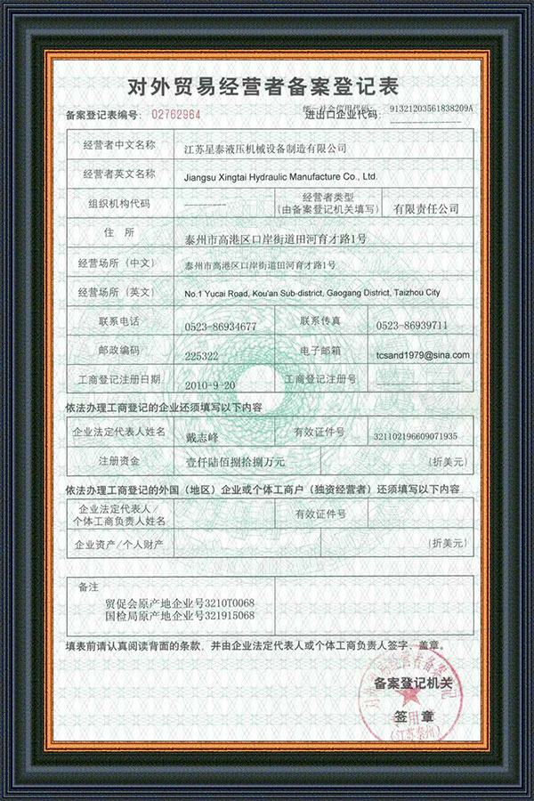 شركة جيانغسو شينغتاي للتصنيع الهيدروليكي المحدودة